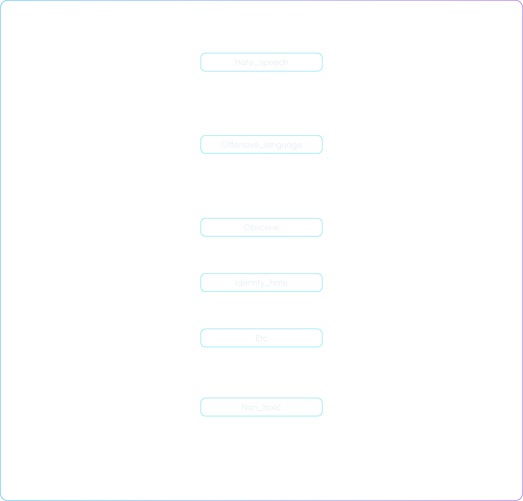 The toxic filtering model was trained using a Language model. Initially, separate models were developed for a variety of PLMs to evaluate their performance, and then the best-performing language model was selected for further development. Continual tagging was also done based on the criteria established above to enrich the dataset with as much data as possible. After training, precise evaluation is crucial. For this purpose, separate evaluation sets for each case were constructed to assess the model’s performance. The effectiveness of the model was examined for each type of profanity, identifying which types the model handled well and which it did not. The types for which performance was relatively low were targeted for additional data collection to enhance the model’s accuracy and robustness in handling a broader spectrum of offensive content.